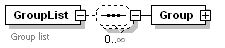 | source | <xs:element name="GroupList"> <xs:annotation> <xs:documentation>Group list</xs:documentation> </xs:annotation> <xs:complexType> <xs:sequence minOccurs="0" maxOccurs="unbounded"> <xs:element name="Group"> <xs:complexType> <xs:sequence> <xs:element name="Name" type="xs:string"/> <xs:element name="Description" type="xs:string"/> </xs:sequence> </xs:complexType> </xs:element> </xs:sequence> </xs:complexType> </xs:element> |