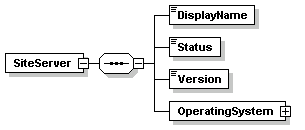 | source | <xs:element name="SiteServer"> <xs:complexType> <xs:sequence> <xs:element name="DisplayName" type="xs:string"/> <xs:element name="Status" type="xs:string"/> <xs:element name="Version" type="xs:string"/> <xs:element name="OperatingSystem"> <xs:complexType> <xs:sequence> <xs:element name="AvailablePhysicalMemory" type="xs:integer"/> <xs:element name="TotalPhysicalMemory" type="xs:integer"/> <xs:element name="AvailableVirtualMemory" type="xs:integer"/> <xs:element name="TotalVirtualMemory" type="xs:integer"/> <xs:element name="Version" type="xs:string"/> </xs:sequence> </xs:complexType> </xs:element> </xs:sequence> </xs:complexType> </xs:element> |