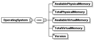 | source | <xs:element name="OperatingSystem"> <xs:complexType> <xs:sequence> <xs:element name="AvailablePhysicalMemory" type="xs:integer"/> <xs:element name="TotalPhysicalMemory" type="xs:integer"/> <xs:element name="AvailableVirtualMemory" type="xs:integer"/> <xs:element name="TotalVirtualMemory" type="xs:integer"/> <xs:element name="Version" type="xs:string"/> </xs:sequence> </xs:complexType> </xs:element> |